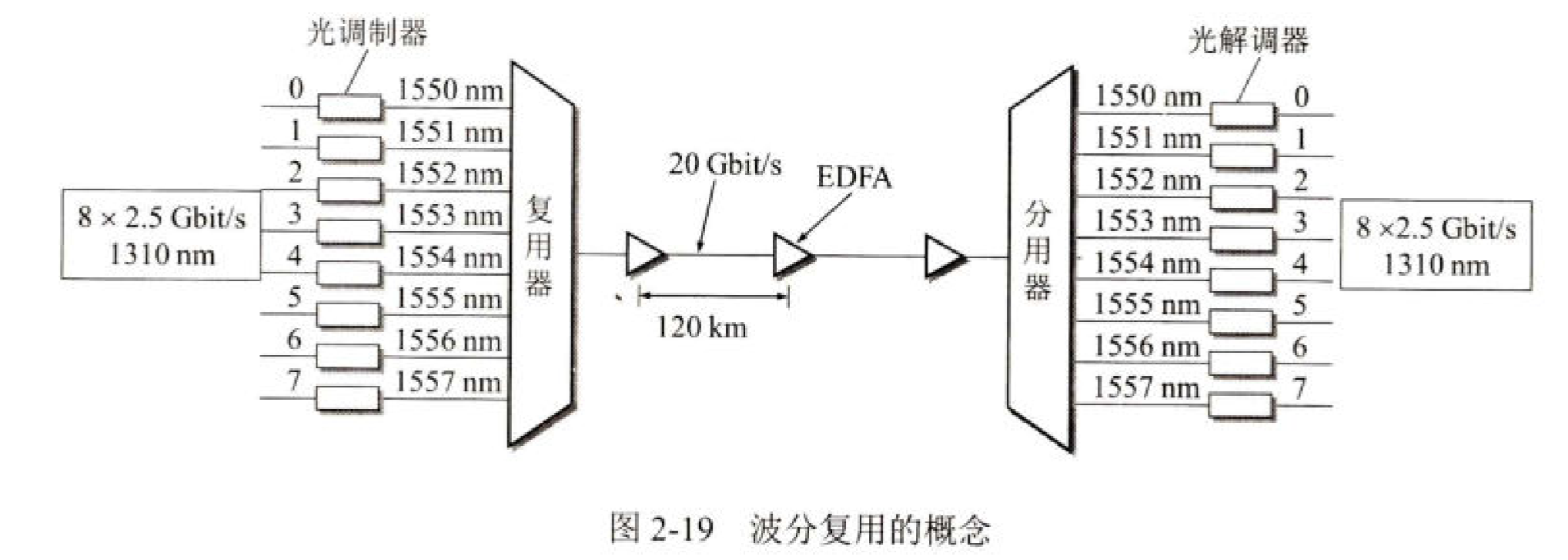 后来可以复用几十个甚至上百个波长,称为 DWDM(Dense WDM,密集波分复用)