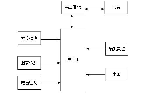 本课题为基于单片机和LabVIEW的多路数据采集器系统,在此将整个系统架构设计如图2.1所示,整个系统在硬件上采用了STC89C52单片机,光敏电阻,,MQ-2烟雾传感器,CH340串口通信模块等构成多路数据采集器系统的硬件部分,在功能上,其可以实现光照强度、电压、烟雾浓度的数据采集,并通过串口上传到PC电脑,并在电脑端通过LabVIEW完成上位机的制作,通过LabVIEW界面可以监控整个数据的状态多。