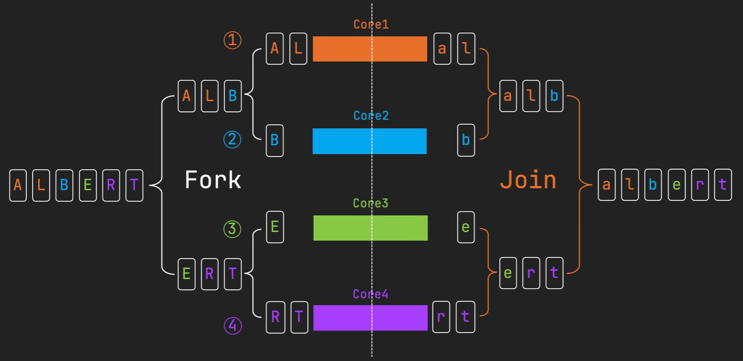 每个并行执行的任务在完成处理后,会将其结果存储到一个临时数据结构中。Fork/Join框架会利用分割迭代器提供的区段顺序信息,引导这些临时结果按顺序合并。