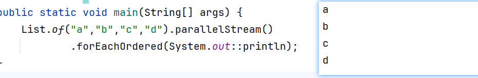List.of("a","b","c","d").parallelStream().forEachOrdered(System.out::println);