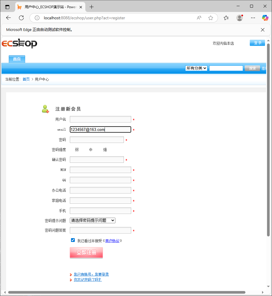 driver.get('http://localhost:8088/ecshop/user.php?act=register')