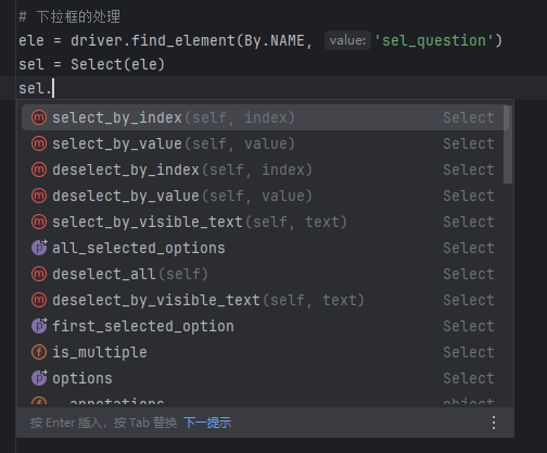 alert.accept()# 下拉框的处理