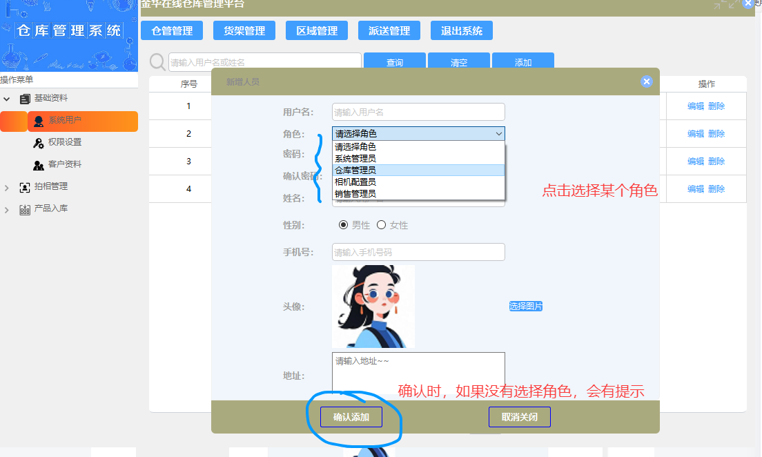 用户角色管理涉及到的界面有新增用户和编辑用户这两个地方,所以界面上UI设计需要调整
