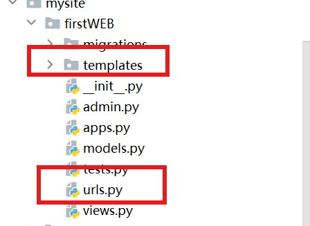 就会出现这些文件,需要创建一个templates目录用于放置html文件,以及需要创建一个urls.py作为子路由。