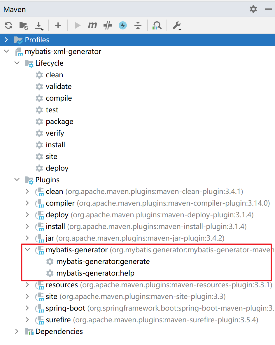 <plugin><groupId>org.mybatis.generator</groupId><artifactId>mybatis-generator-maven-plugin</artifactId><version>1.3.5</version><configuration><!--generator配置文件所在位置--><configurationFile>src/main/resources/generator/generatorConfig.xml</configurationFile><overwrite>true</overwrite><verbose>true</verbose></configuration><dependencies><dependency><groupId>mysql</groupId><artifactId>mysql-connector-java</artifactId><version>8.0.33</version></dependency></dependencies>