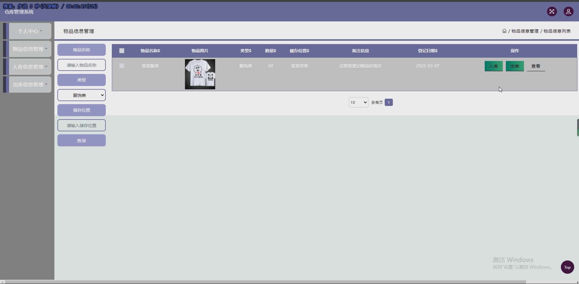 - 出入库管理模块:实现入库信息(如入库时间、数量、供应商)和出库信息(出库时间、数量、接收方)的录入与查询,自动更新物品库存。