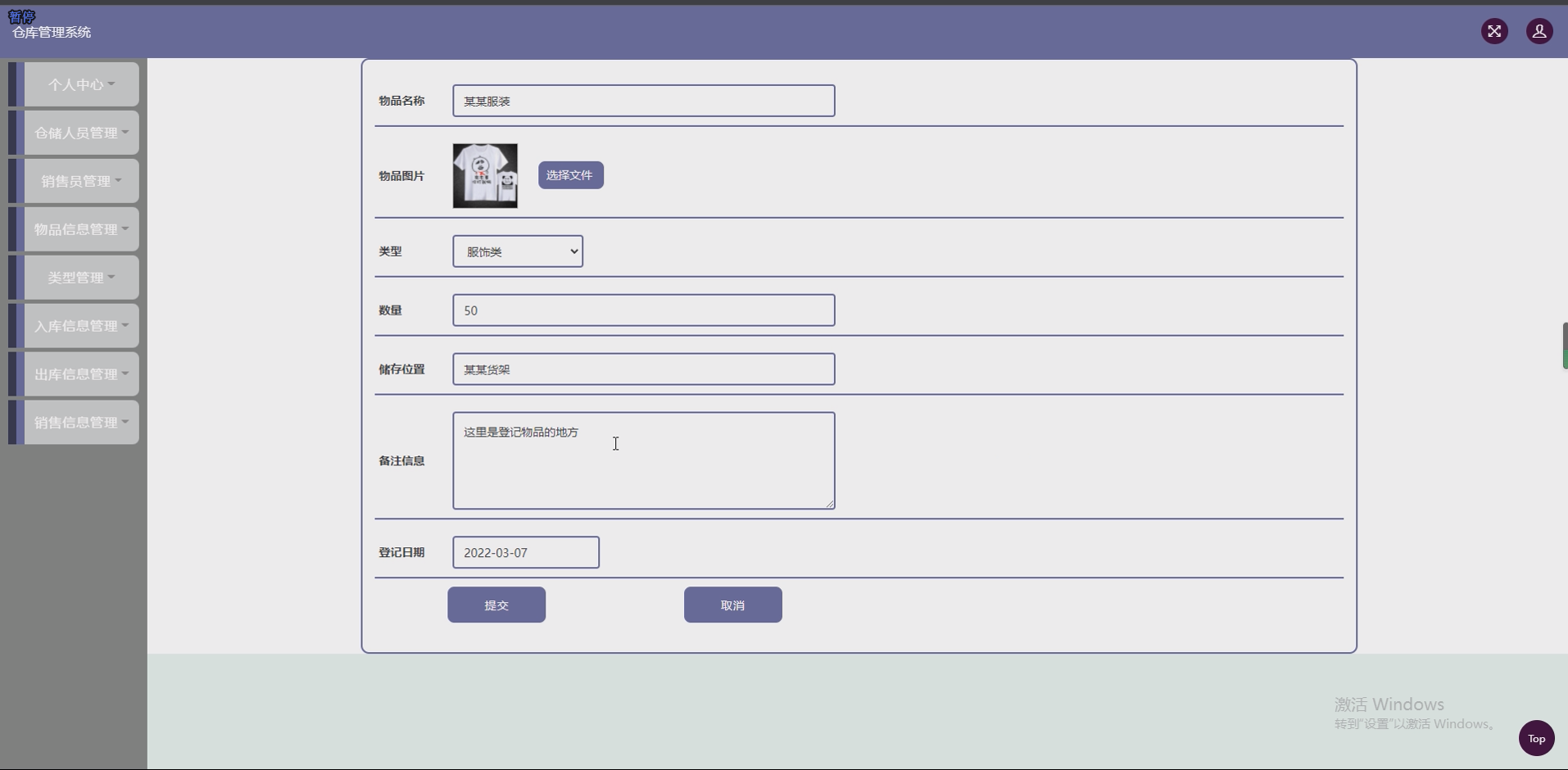 - 物品管理模块:开发物品信息与类型管理功能,记录物品名称、规格、数量等信息,对物品按类型分类,方便快速检索。