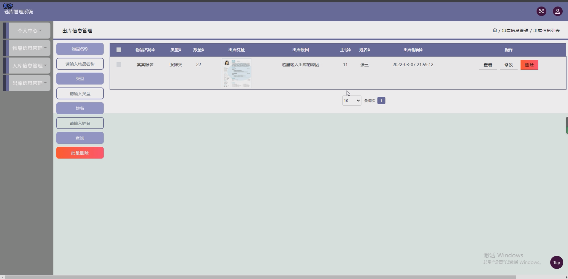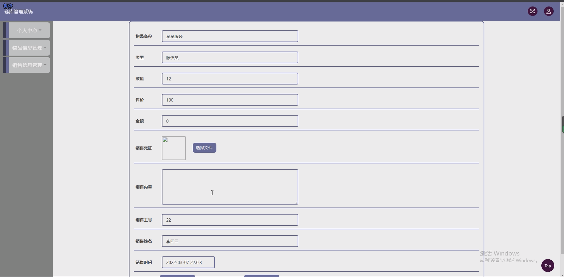 - 销售管理模块:记录销售信息(客户、销售物品、数量、金额),关联出库数据,形成完整销售链路,生成基础销售报表。