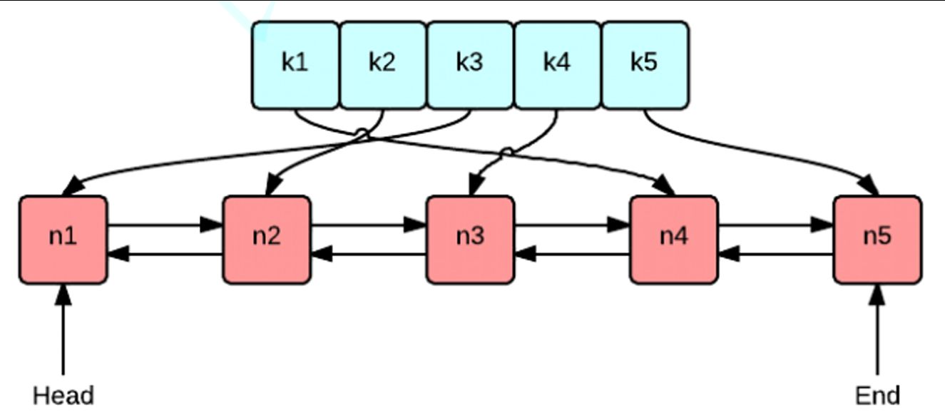 - 让链表尾元素表示最近最少使用的数据就可以实现LRU,但是,查找更新的效率为O(N)