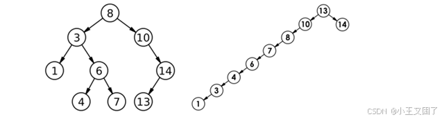 小Tips:这里最多查找高度次的时间复杂度并不是O(logN),这是在理想的情况下,即这颗二叉树是一颗满二叉树或者完全二叉树。在极端情况下,这棵二叉树只有一条路径,此时最多查找高度次的时间复杂度就是O(N)。