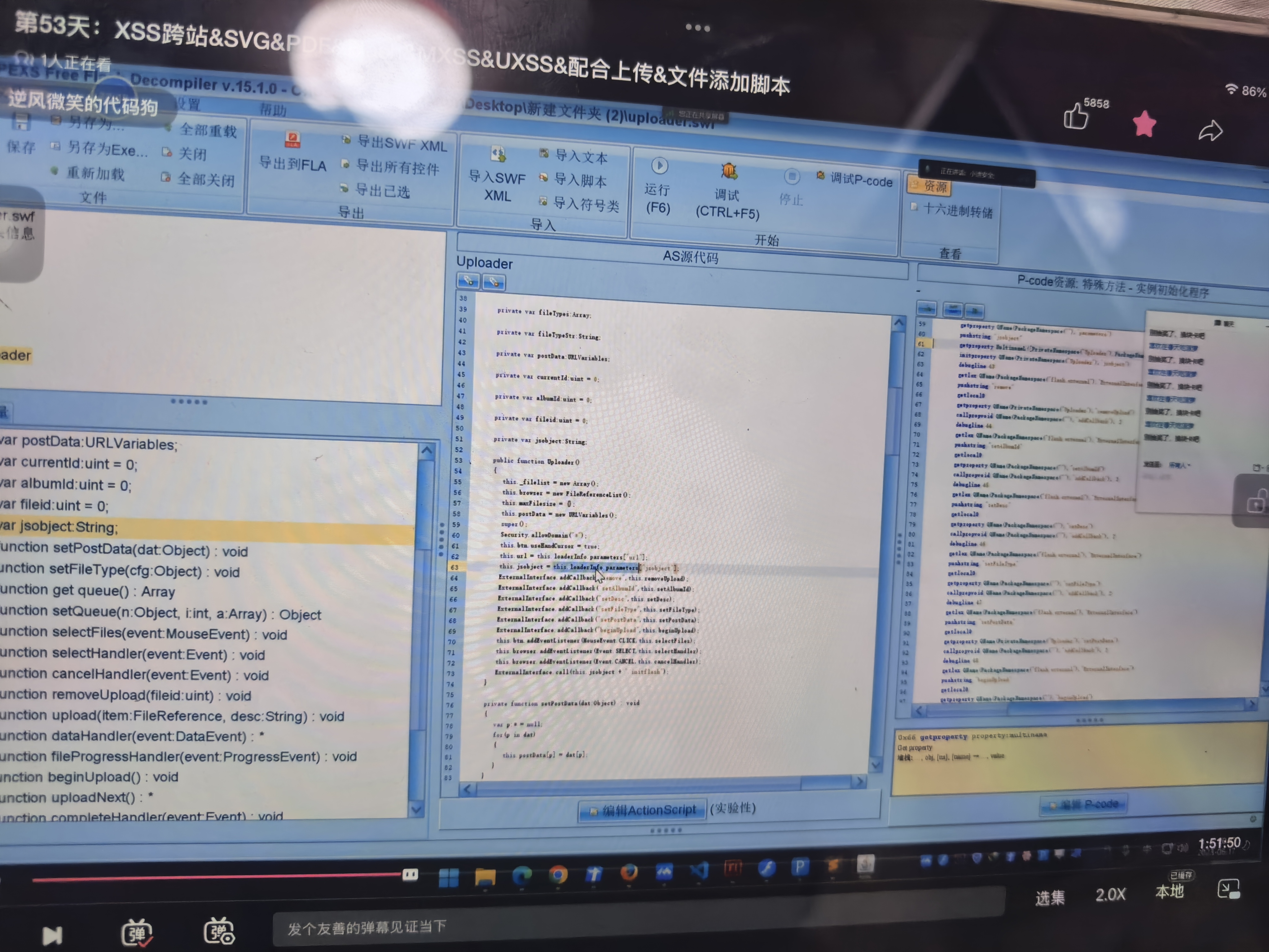 针对SWF文件反编译通过代码的解释 找调用地方,然后参数会让他执行js。