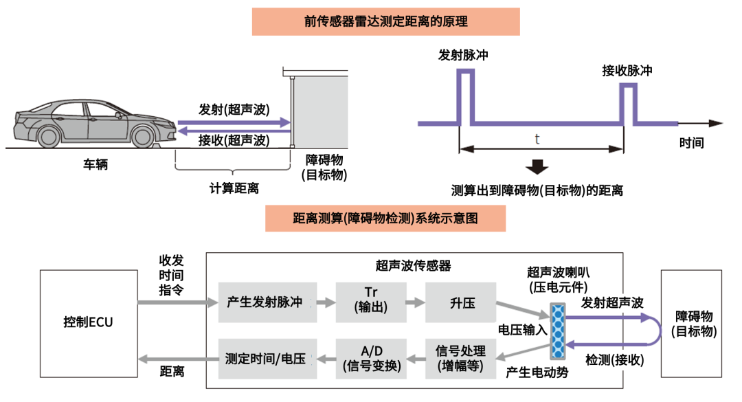 由于车载超声传感器必须防水,因此其灵敏度低于室内使用的传感器。因此,必须使用变压器将传感器的驱动电压提高到70至100V,才能发射更强的超声波。