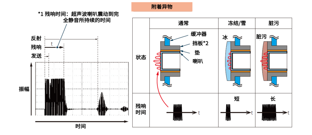 由于后置声纳超声波传感器同时处理超声波的发送和接收,因此,除非发射的声波消散且没有快速振荡,否则它无法开始接收其反射。振荡时间越短,检测范围就越近。
