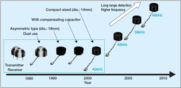 村田制作所的超声波传感器外壳兼作超声波发射器,经过精密制造,可与驱动频率产生共振。这正是其高灵敏度和声压的原因。