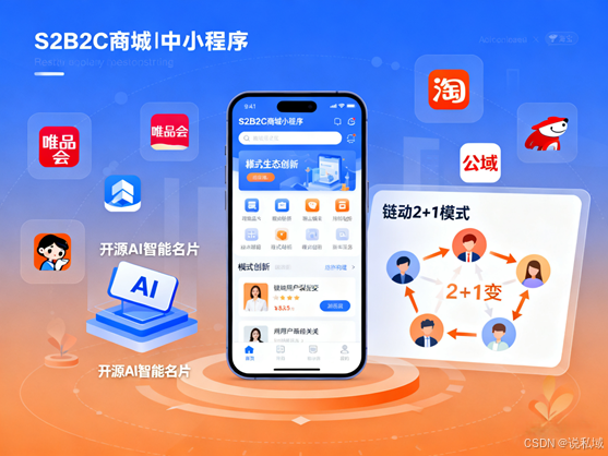 S2B2C商城小程序作为三者整合的“载体”,将开源AI智能名片的“技术连接”与链动2+1模式的“机制裂变”融入统一的消费场景,打通了公域流量从“获取—留存—裂变—转化”的全链路闭环,具体协同逻辑如下: