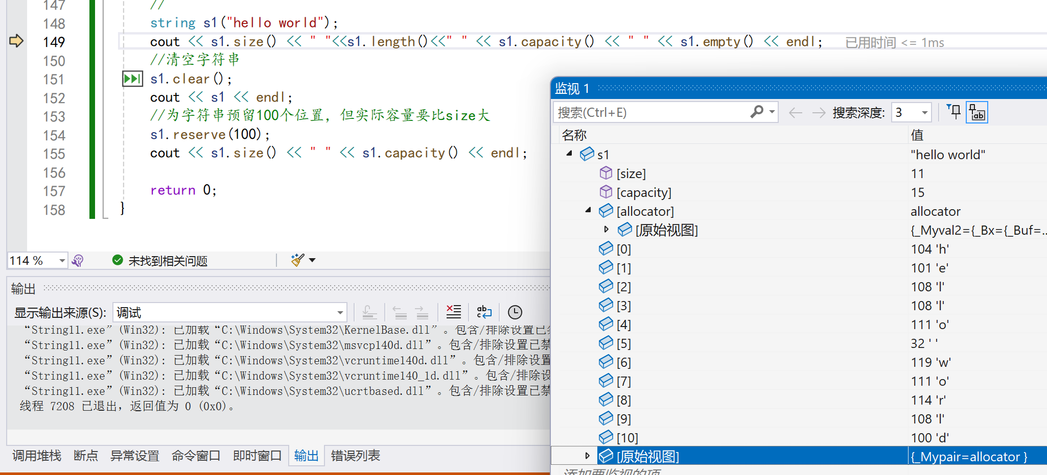 2. 对string操作时,如果能够大概预估到放多少字符,可以先通过reserve把空间预留