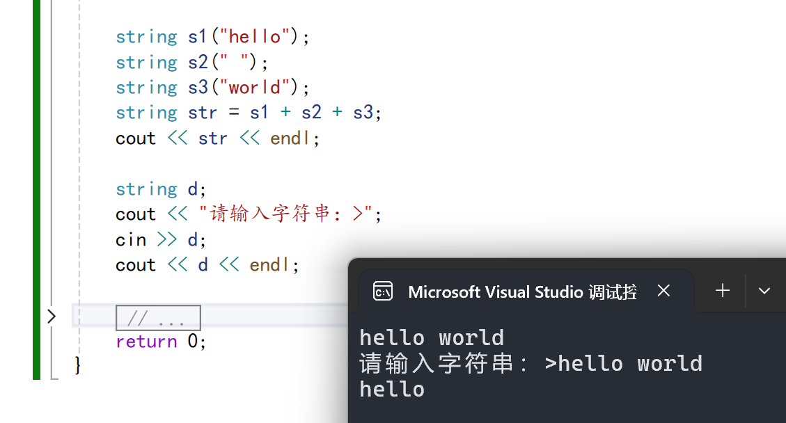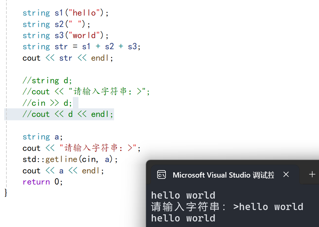 我们可以看到cin无法读取空格以及后面的字符串。