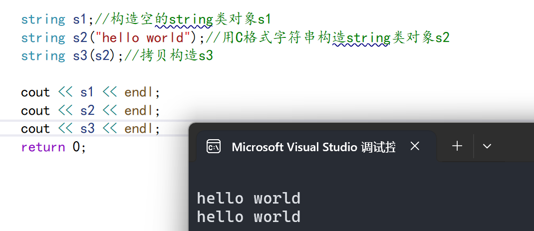 string | 构造空的string类对象,即空字符串 |