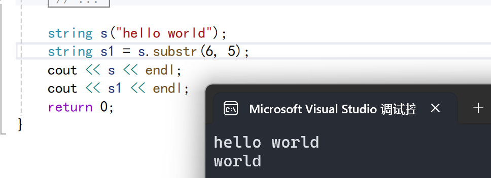 substr | 在str中从pos位置开始,截取n个字符,然后将其返回 |