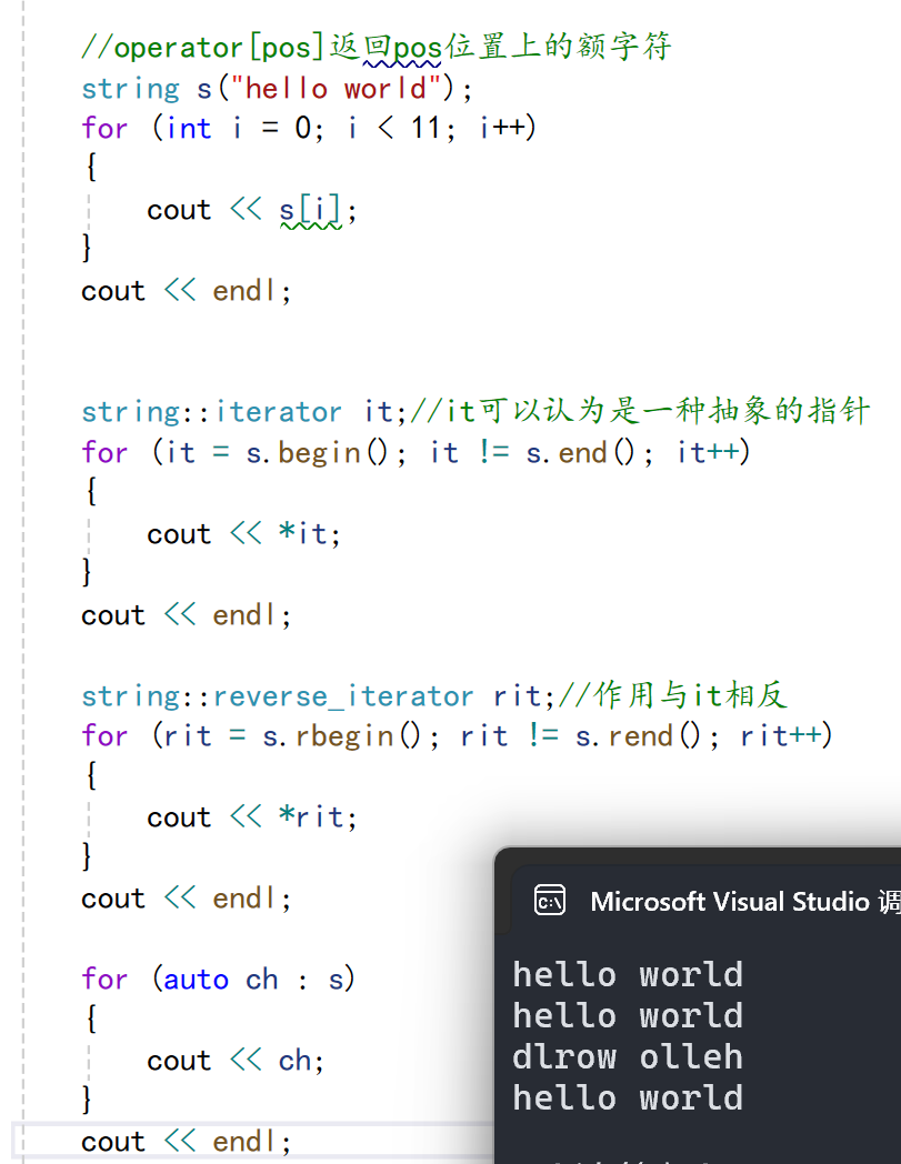 begin+end | begin获取一个字符的迭代器+end获取最后一个字符下一个位置的迭代器 |