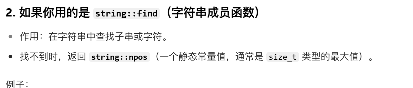 find+npos | 从字符串pos位置开始往后找字符c,返回该字符在字符串中的位置 |