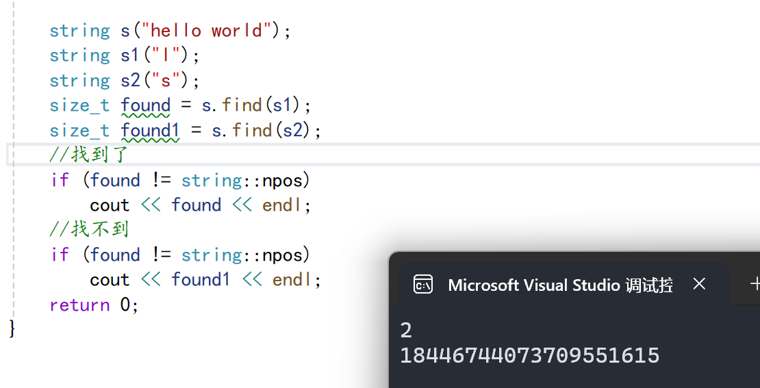我们可以看到找不到时返回值是其容量的最大值。