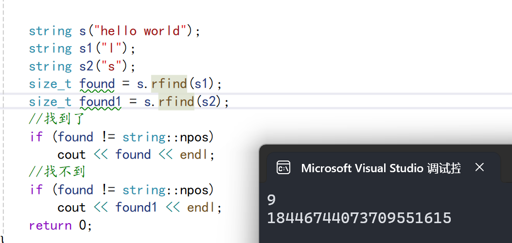 rfind跟反向迭代器差不多倒着找。