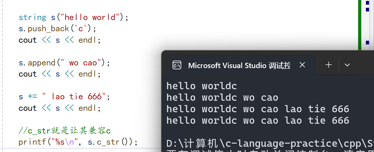 1. 在string尾部追加字符时,s.push_back(c) / s.append(1, c) / s += 'c'三种的实现方式差