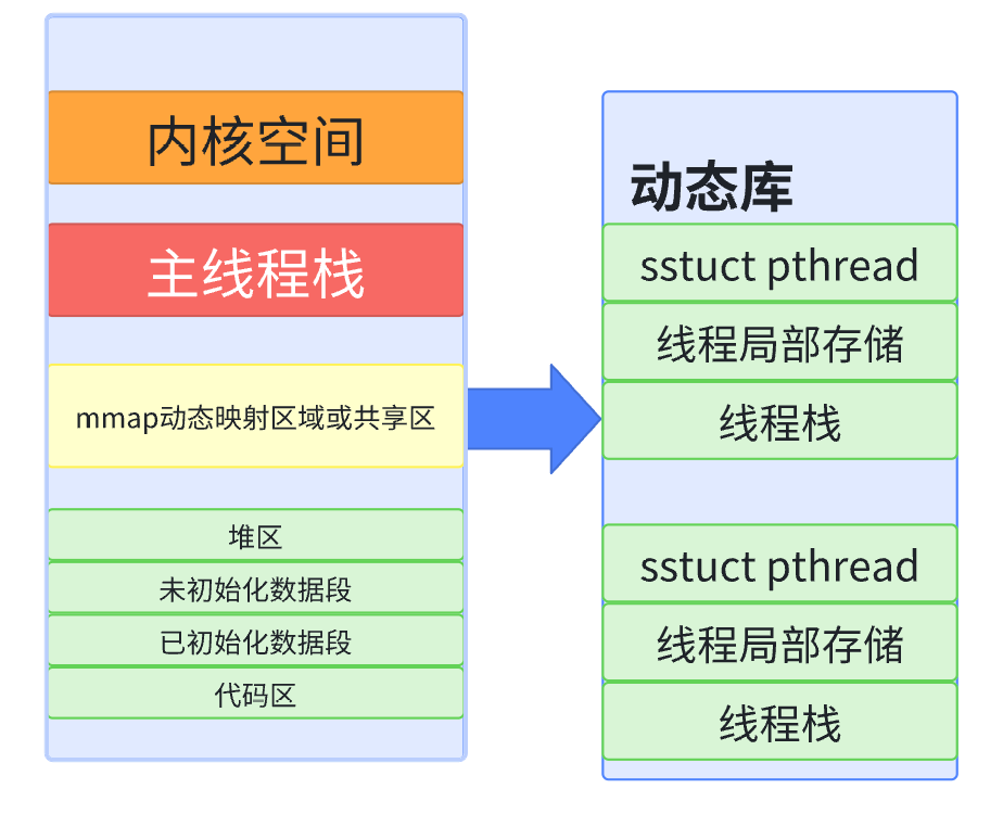 能动态增长,一旦用尽就没了,这是和生成进程的 fork 不同的地方。在 glibc 中通过 mmap