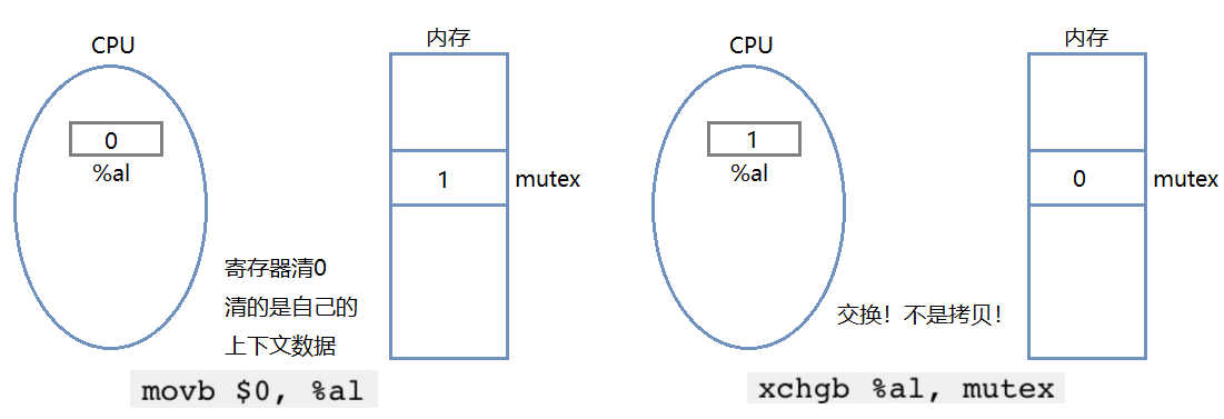 我们用swap或exchange将内存中的变量交换到寄存器中,其实就是当前进程/线程在获取锁,是交换,而不是拷贝,所以锁只有一份,谁申请谁持有。