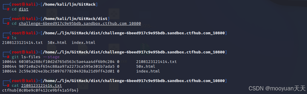 2108123121414.txt 50x.html index.html┌──(root㉿kali)-[/home/…/ljn/GitHack/dist/challenge-6beed917c9e95bdb.sandbox.ctfhub.com_10800]