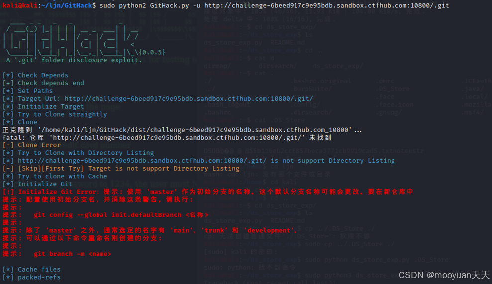 Cloning into '/home/kali/ljn/GitHack/dist/challenge-6beed917c9e95bdb.sandbox.ctfhub.com_10800'...fatal: repository 'http://challenge-6beed917c9e95bdb.sandbox.ctfhub.com:10800/.git/' not found