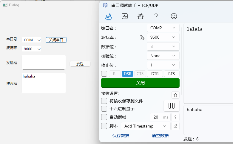 {ui->setupUi(this);// 假设UI元素:ui->comboBoxPort (QComboBox for ports), ui->comboBoxBaud (QComboBox for baud rates),// ui->pushButtonOpen (QPushButton for open/close), ui->textEditReceive (QTextEdit for received data),// ui->lineEditSend (QLineEdit for send data), ui->pushButtonSend (QPushButton for send).// 填充可用串口for (const QSerialPortInfo &info : QSerialPortInfo::availablePorts()) {ui->comboBoxPort->addItem(info.portName());}// 填充常见波特率ui->comboBoxBaud->addItems({"9600", "19200", "38400", "57600", "115200"});// 连接信号槽connect(ui->pushButtonOpen, &QPushButton::clicked, this, &Dialog::openSerialPort);connect(ui->pushButtonSend, &QPushButton::clicked, this, &Dialog::sendData);connect(serial, &QSerialPort::readyRead, this, &Dialog::readData);connect(serial, QOverload<QSerialPort::SerialPortError>::of(&QSerialPort::errorOccurred),this, [](QSerialPort::SerialPortError error) {if (error != QSerialPort::NoError) {qDebug() << "Serial port error:" << error;}});serial->setBaudRate(QSerialPort::Baud9600); // 默认波特率serial->setDataBits(QSerialPort::Data8);serial->setParity(QSerialPort::NoParity);serial->setStopBits(QSerialPort::OneStop);serial->setFlowControl(QSerialPort::NoFlowControl);