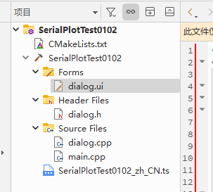 新建之后可以点开看到文件夹中的dialog.cpp