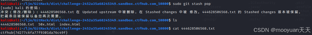 恢复暂存内容,解决冲突后获取到包含 flag 的文件。
