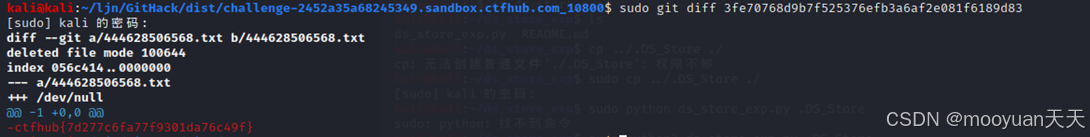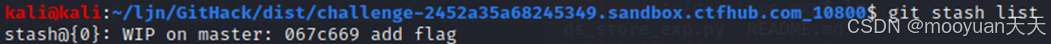 [+] Valid Repository Success[+] Clone Success. Dist File : /home/kali/ljn/GitHack/dist/challenge-2452a35a68245349.sandbox.ctfhub.com_10800