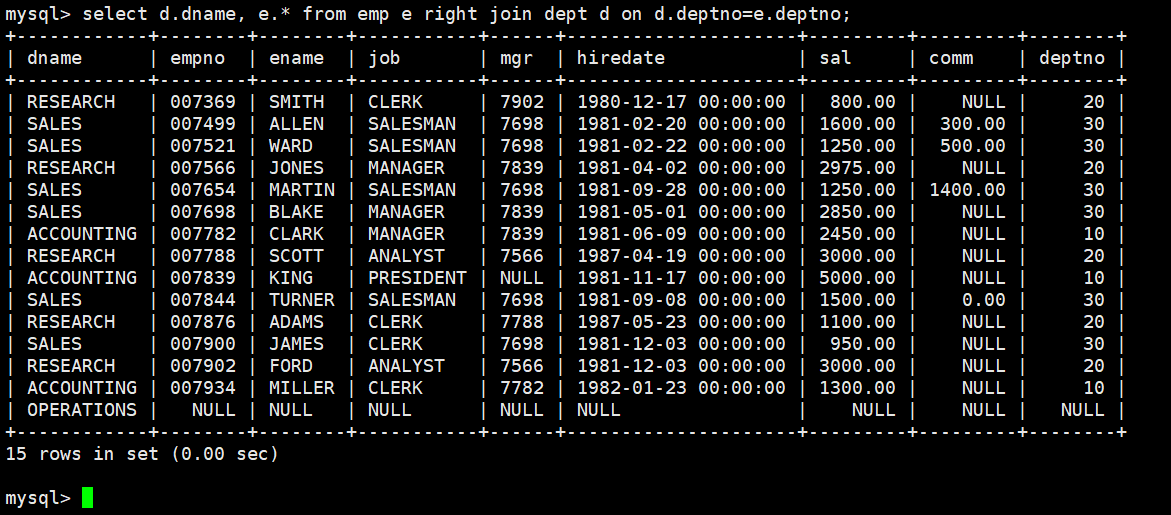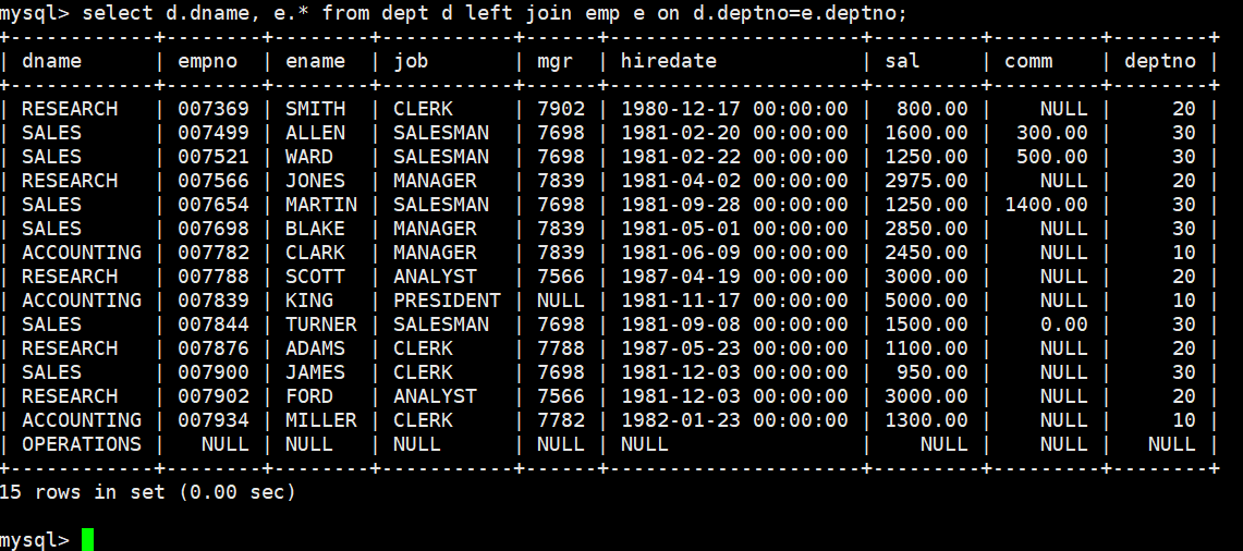 内连接本质上是通过WHERE子句对两表笛卡尔积的结果进行筛选。我们之前学习的查询都属于内连接,这也是开发中最常用的连接查询方式。