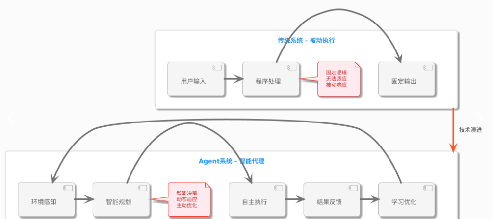 传统系统的局限性主要包括被动响应模式、任务执行僵化、缺乏智能决策。