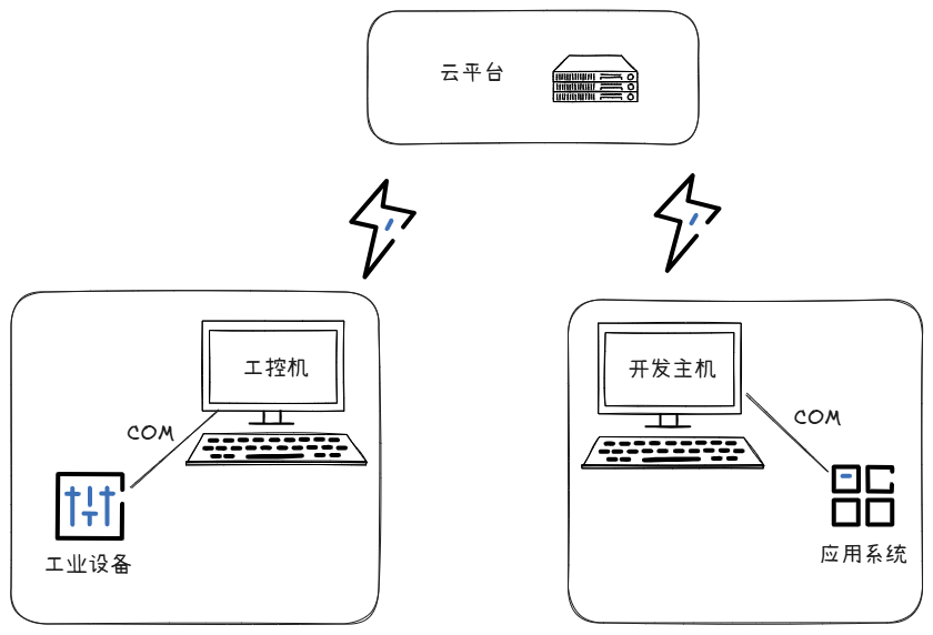 - 开发主机(称为 B 主机),需要使用虚拟串口工具,模拟出一对串口。比如 com1 和 com101。