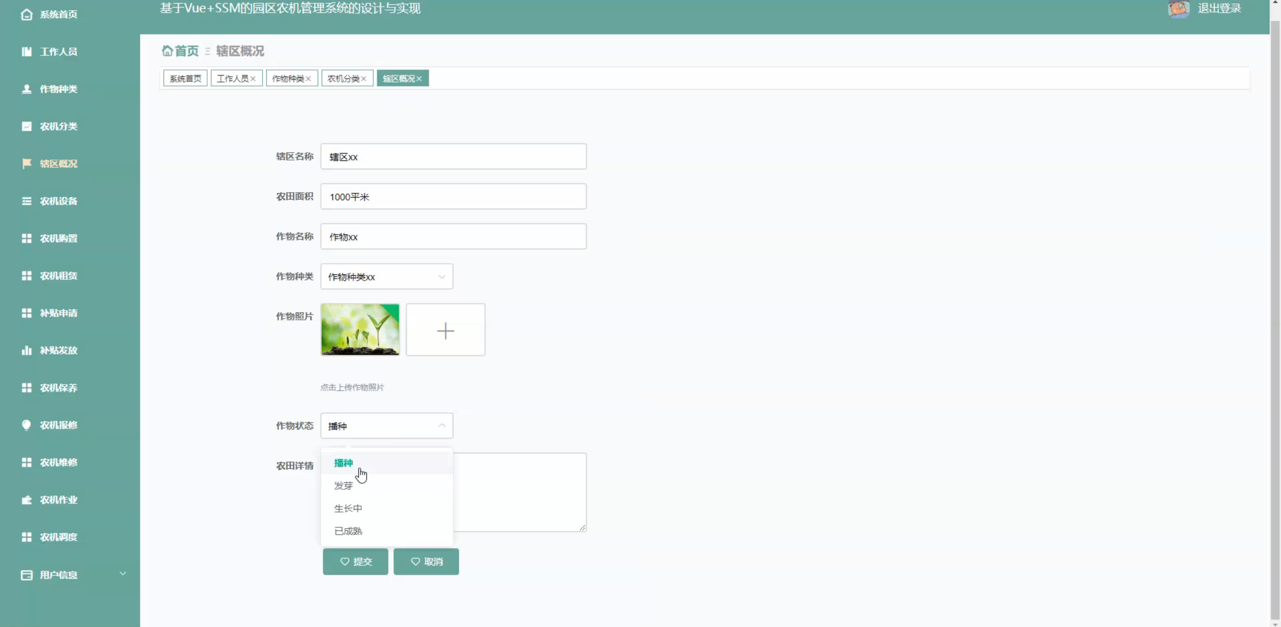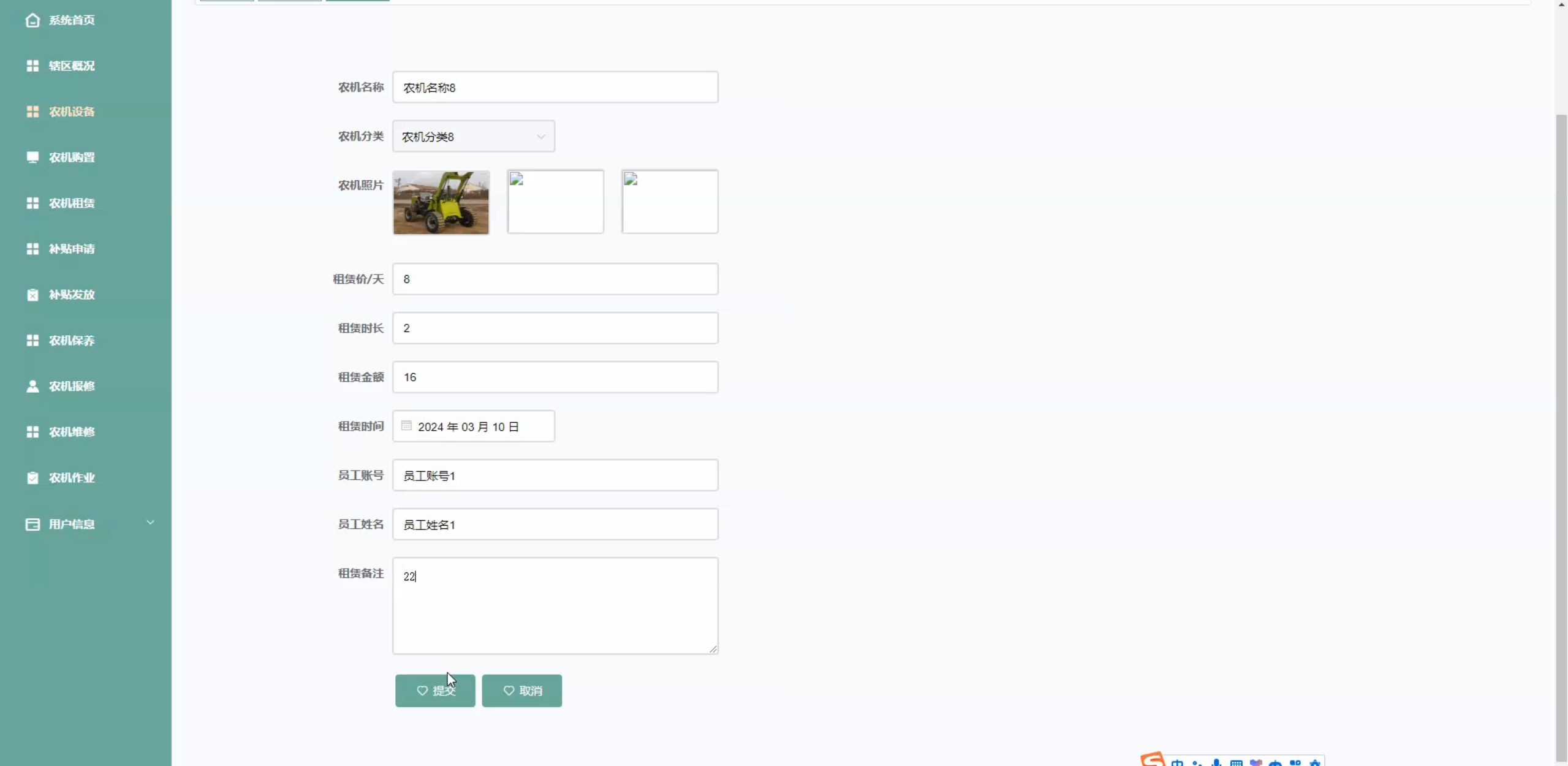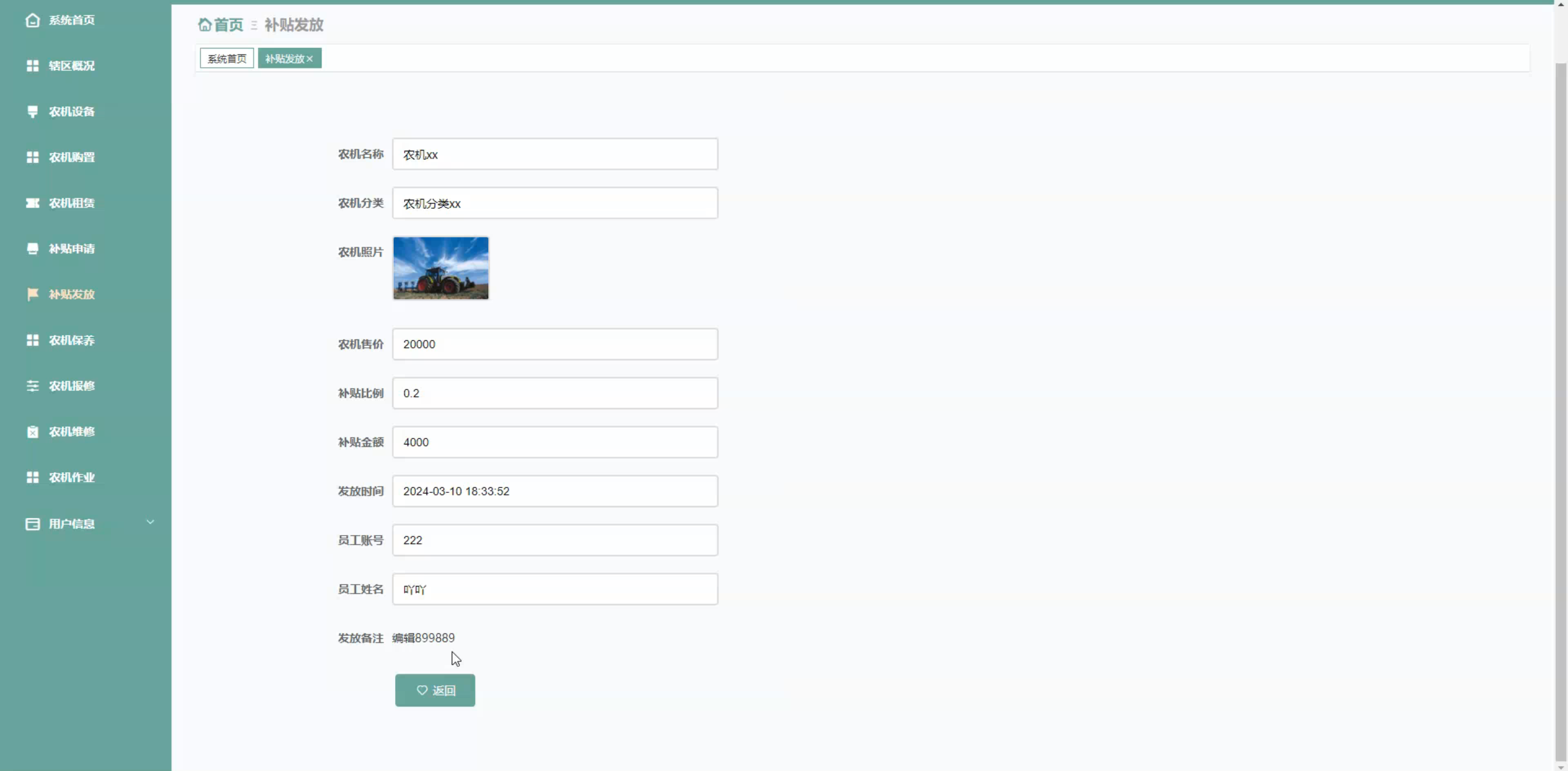工作人员,作物种类,农机设备,农机分类,农机购置/租赁,农机保养/报修,补贴申请/发放