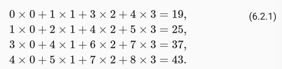 - 它包含特征:输出值(如图6.2.1中的19, 25, 37, 43)不是简单的像素值,而是输入中某种特定特征(如边缘、角点、纹理)的强度响应。卷积核(如