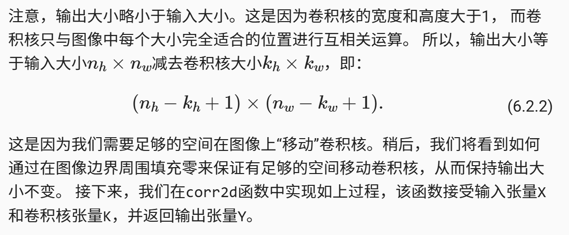 卷积核的高度和宽度都是2,而卷积核窗口(或卷积窗口)的形状由内核的高度和宽度决定(即2x2)。