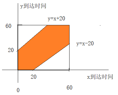 图上看:总的面积是60*60; 可能见面的区域面积:60*60 - 40*40