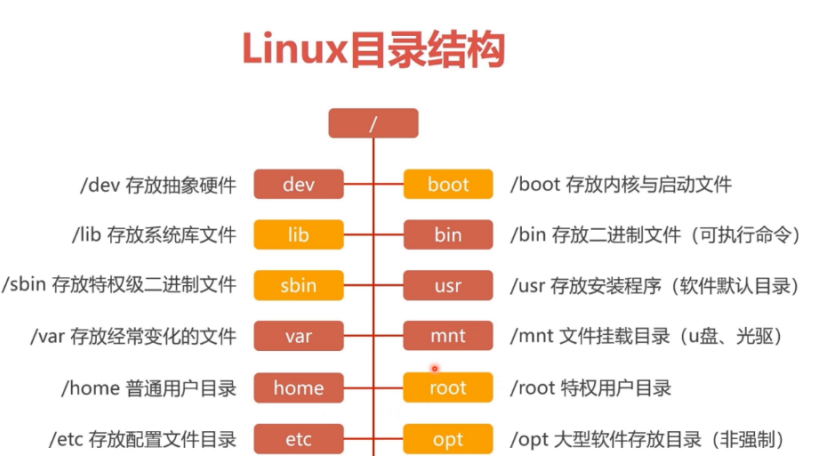 那么目录里可以继续存其他的文件,也就是说,Linux中的目录结构整体是一个多叉树,它的叶子节点一定是