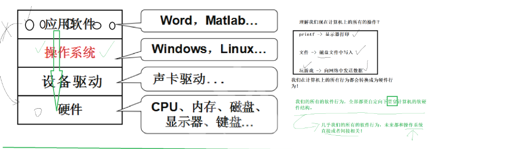 操作系统位于应用软件之下,设备驱动和硬件之上