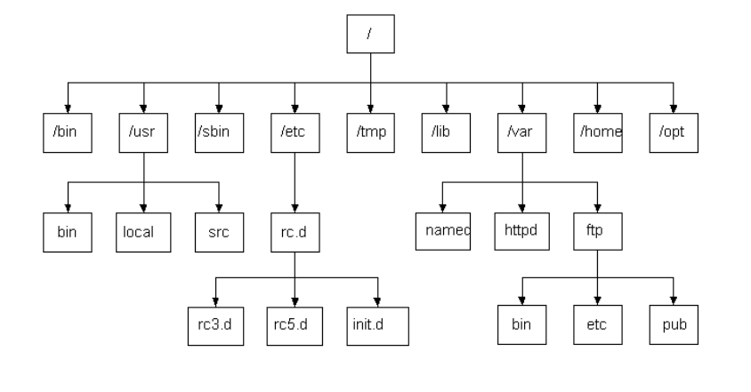 • Linux系统中,磁盘上的文件和目录被组成⼀棵目录树,每个节点都是目录或文件