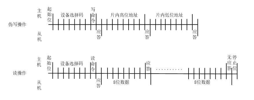 伪写操作并未真正的写入数据,而是利用“写操作的地址传输阶段”,将目标读地址加载到存储器内部的地址计数器中。其关键特征是:仅完成“地址发送”,不发送待写入数据,且不发送停止位,为后续的读操作保留总线控制权。