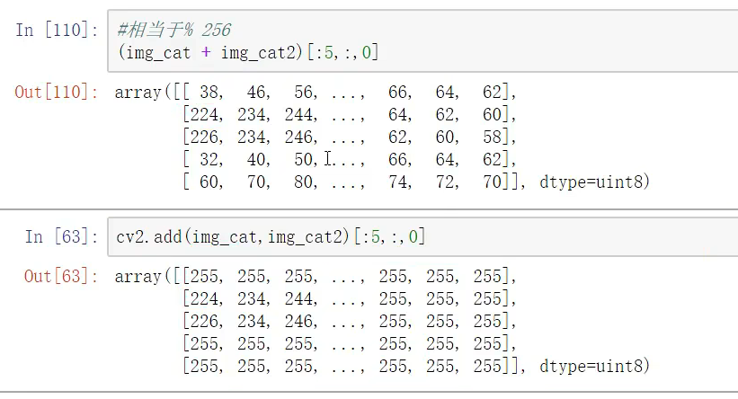 add是直接等于两图像的像素点值之和,但是不可以超过255,超过255就等于255