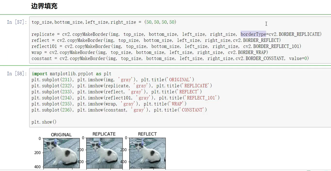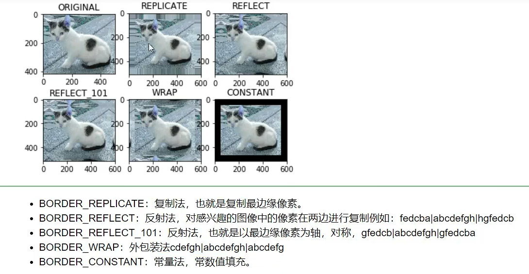 用的函数都是copyMakeBorder,最后的参数是填充方法