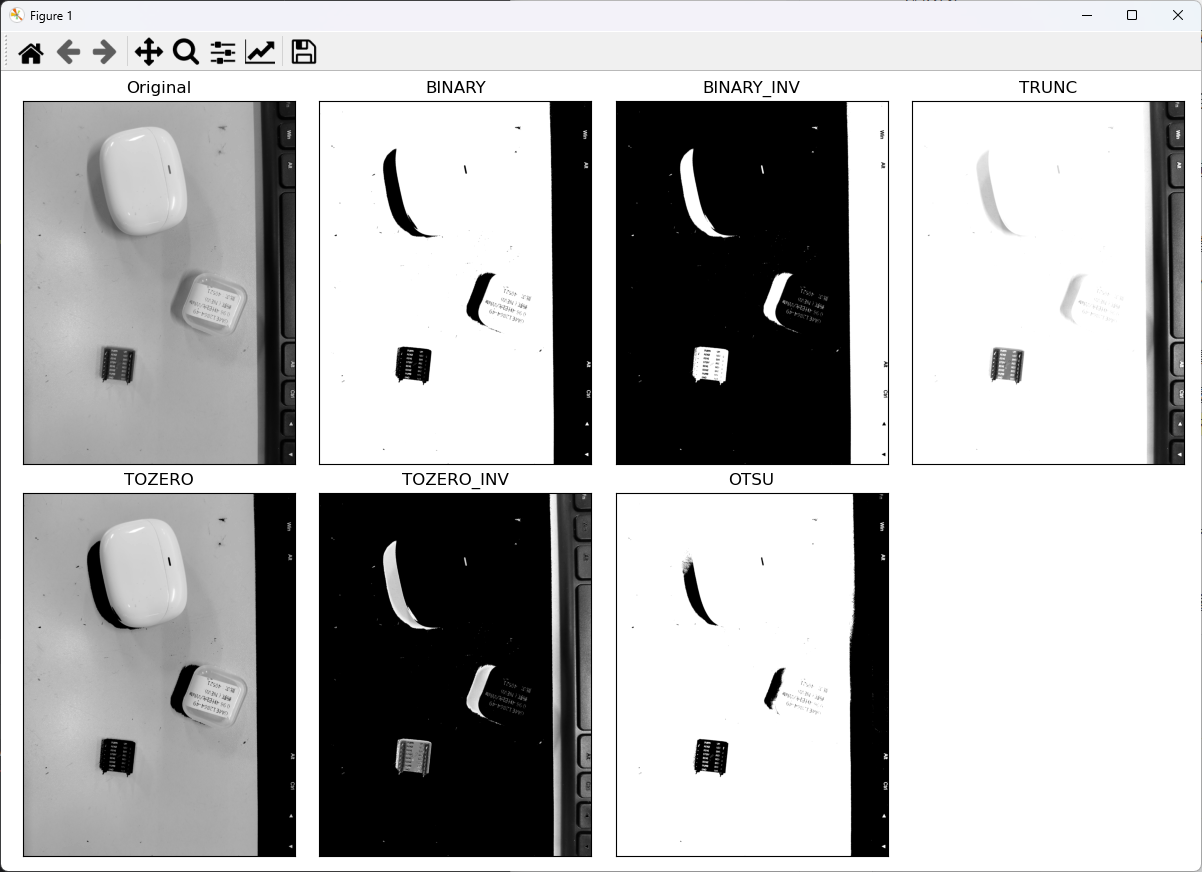 ret6, thresh6 = cv2.threshold(gray, 0, 255, cv2.THRESH_BINARY + cv2.THRESH_OTSU)# 显示结果